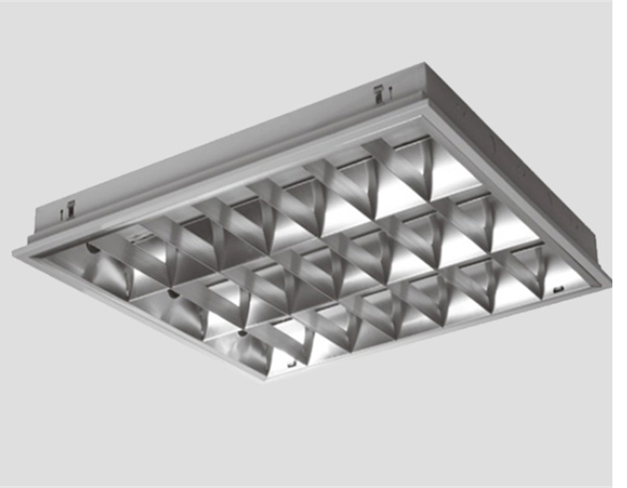 T8格栅灯盘采用面阳极氧化铝反光罩,无眩光,采用抛物型配光曲线,灯座采用切入旋转式灯座,安全可靠;紧密型接触底盘 采用斜底型设计,适用于各种不同结构的天花龙骨安装,表面采 用喷塑工艺处理,防腐性好,不易褪色;它集优秀的配光、低能 耗,光线控制于一体的灯具,能够达到水平的办公室照明要求。